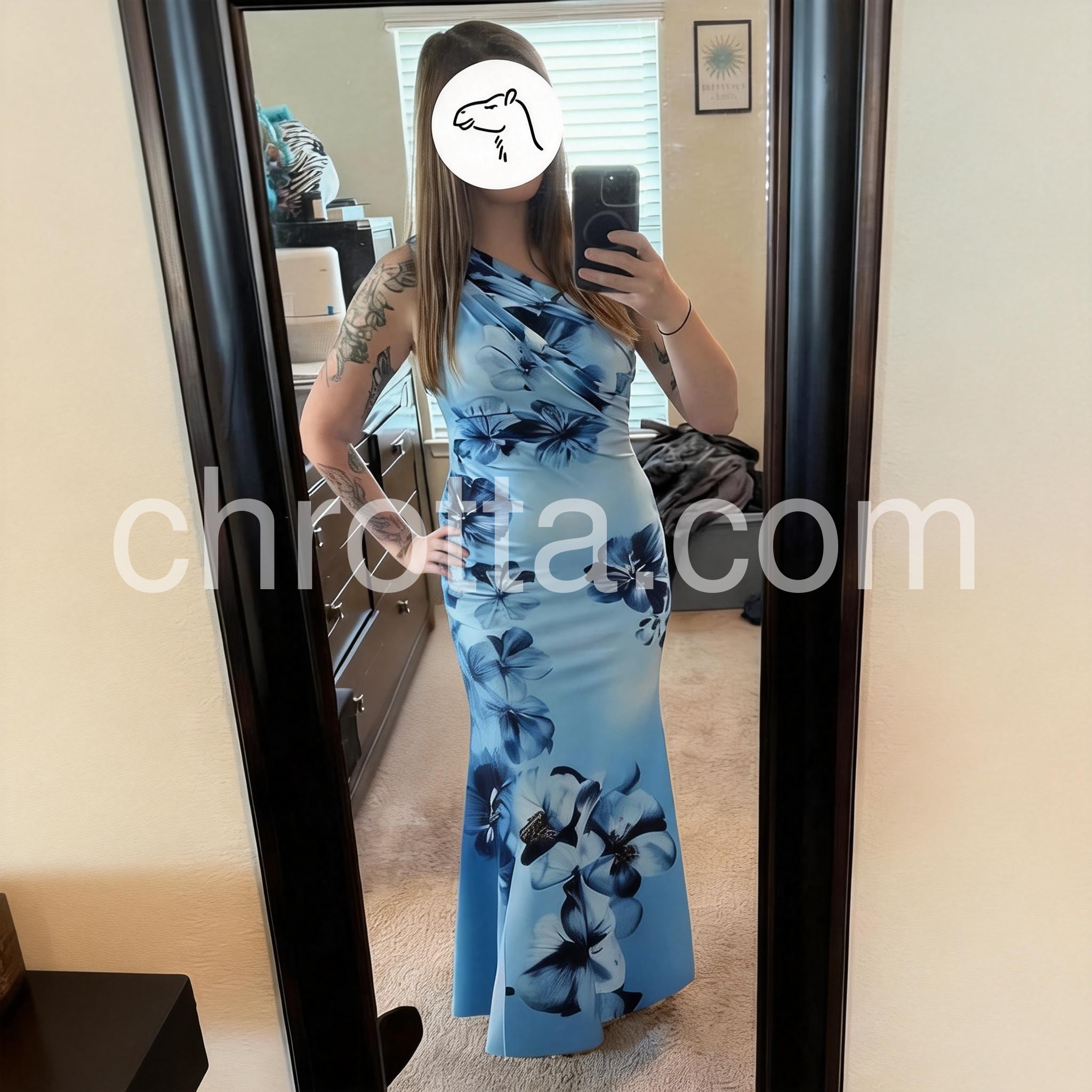 If you want to turn heads, buy this dress. The asymmetrical neckline is super flattering and the blue floral print is unique. I received compliments all night long at my friends destination wedding.