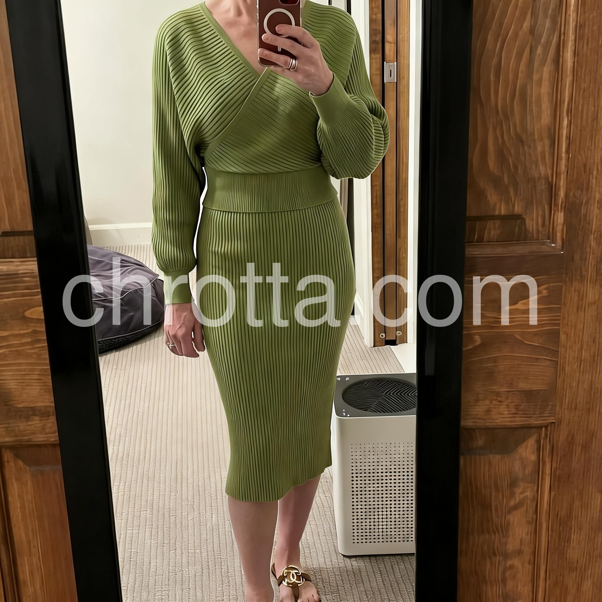 This sweater dress is such a stylish find! The fine rib knit gives it a unique texture, and the muted green tone is elegant without being too bold. I especially appreciate the way the waistline creates a clean silhouette. It’s comfortable enough for daily wear but still looks dressy.